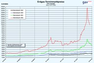 Im vergangenen Jahr sind die Terminmarktnotierungen in Bereiche vorgestoßen, die selbst die Befürworter der Verteuerung von fossilen Brennstoffen nicht erwartet haben. Die Verteuerung von Erdgas durch das BEHG sollte unter anderem eine Lenkungswirkung entfalten, um eine klimafreundliche Stromerzeugung anzureizen. Die BEHG-Kosten für Erdgas bewegen sich in einem gesetzlich festgelegten Korridor zwischen 4,55 EUR/MWh (2021) und 10,01 EUR/MWh (2025). Bei einem von vielen Experten geforderten CO2-Preis von 80 EUR/t würde die Zusatzbelastung auf 14,56 EUR/MWh ansteigen. Die absoluten Steigerungen am Erdgas-Terminmarkt im letzten Jahr trugen dagegen 125,57 EUR/MWh für das Kalenderjahr 2022, 46,15 EUR/MWh für das Kalenderjahr 2023 und 14,90 EUR/MWh für das Kalenderjahr 2024.